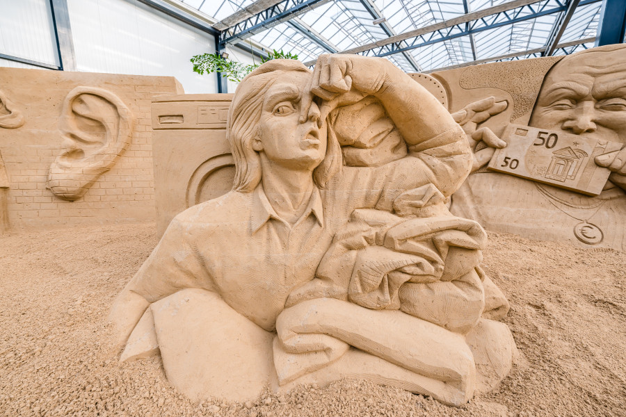 So entstehen aus Sand beeindruckende Bildwelten, die bekannte Redewendungen in Szene setzen und den Besuchern auf überraschende Weise vor Augen führen. Jede Skulptur erzählt ihre eigene Geschichte und lädt dazu ein, innezuhalten, zu schmunzeln oder über die Bedeutung der Worte neu nachzudenken.