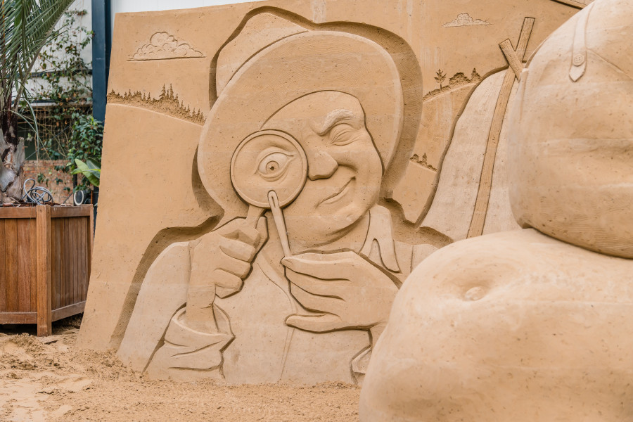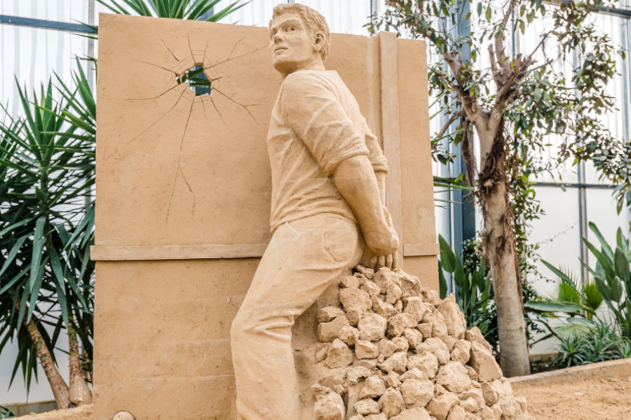Ein insgesamt 40köpfiges Team hat auf 4.000 qm Ausstellungsfläche aus rund 9.000 Tonnen Sand eine beeindruckende Sandwelt erschaffen.